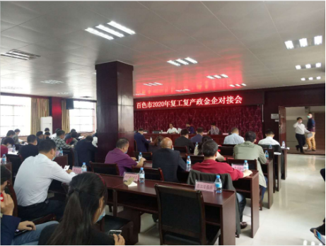 3月10日,公司應邀參加市金融辦召開(kāi)2020年復工復產(chǎn)政銀企對接會(huì )。會(huì )上,市金融辦、市發(fā)改委等部門(mén)負責人分別通報了百色市各領(lǐng)域企業(yè)項目金融需求等情況。