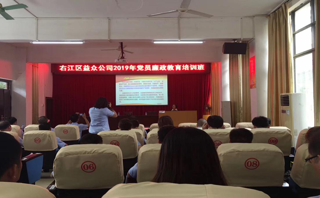 為積極響應黨中央關(guān)于黨風(fēng)廉政建設的號召,強化公司員工廉潔從業(yè)意識,營(yíng)造良好的企業(yè)氛圍。7月19日,益眾投資公司組織部門(mén)負責人、黨員職工、業(yè)務(wù)骨干等一行共55人在右江區委黨校進(jìn)行黨員廉政教育培訓。