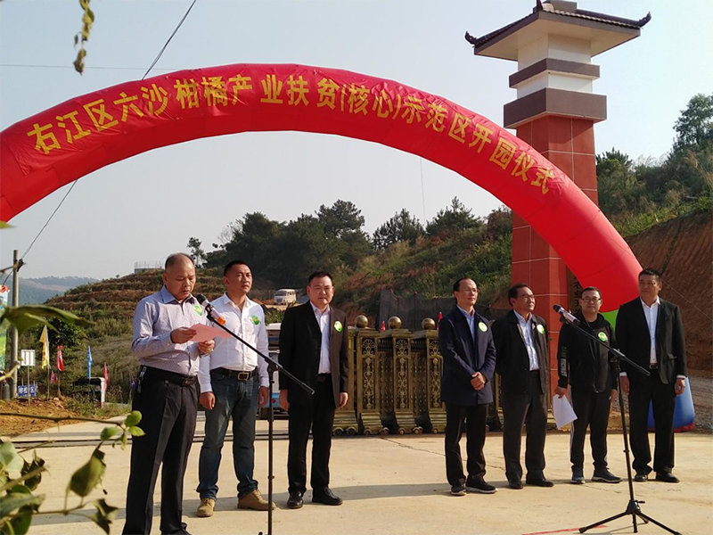 11月4日上午,右江區區委、區人民政府在公司六沙園藝場(chǎng)舉行六沙柑橘產(chǎn)業(yè)扶貧(核心)示范區開(kāi)園儀式。區委常委、宣傳部部長(cháng)、區人民政府副區長(cháng)王世凡宣布開(kāi)園,區政協(xié)副主席黃兆明主持開(kāi)幕式,區人大副主任韋恩龍與區果菜辦主任黃國璐致辭。區扶貧辦、區農業(yè)局、區旅游發(fā)展局等相關(guān)區直單位參加了開(kāi)園儀式。