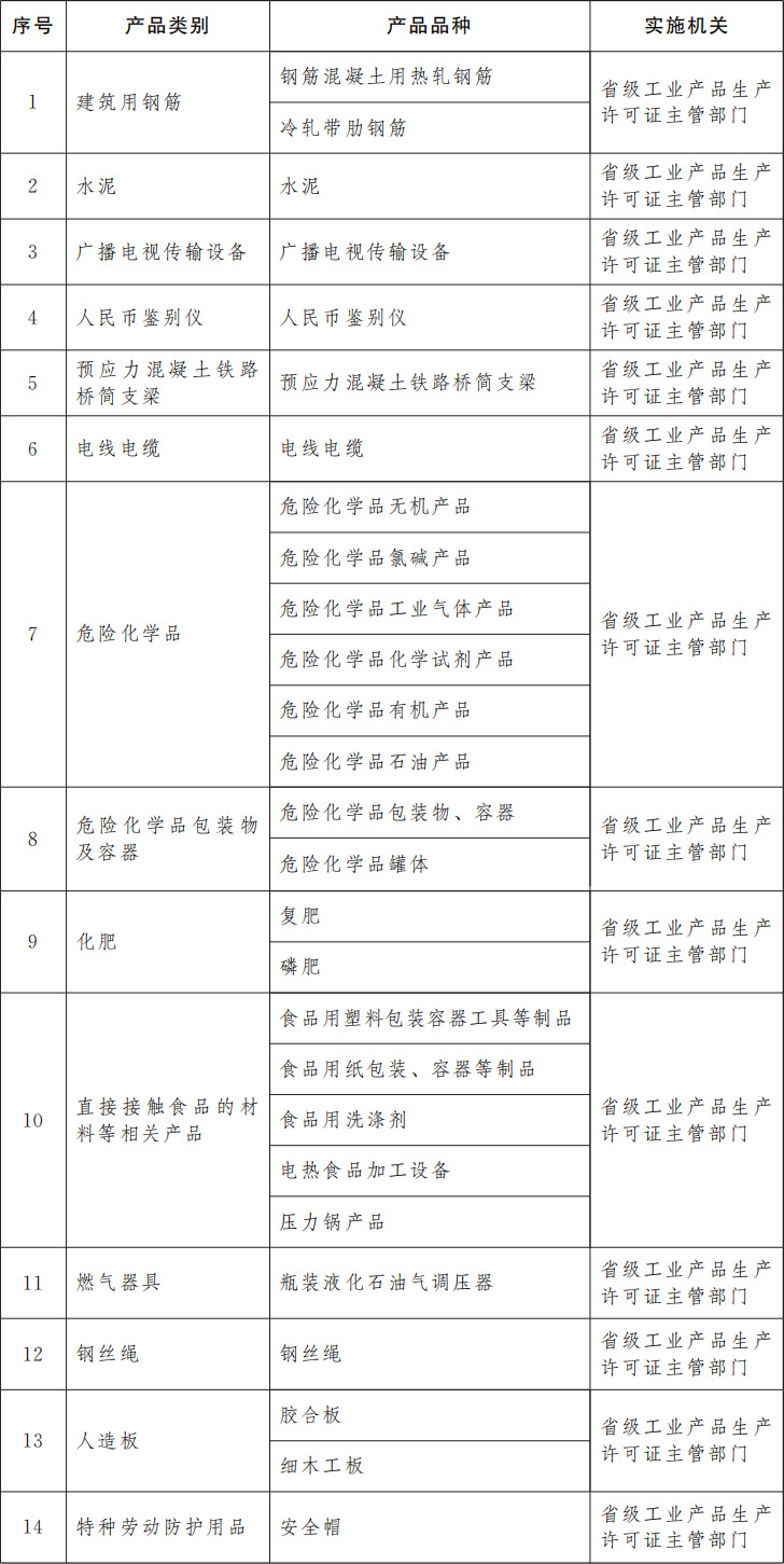 實(shí)施工業(yè)產(chǎn)品生產(chǎn)許可證管理的產(chǎn)品目錄