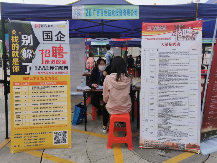 ????????近日,益眾公司組織參加2021屆廣西財經(jīng)類(lèi)高校畢業(yè)生就業(yè)雙向選擇洽談會(huì )和2020年百色市離校未就業(yè)高校畢業(yè)生專(zhuān)場(chǎng)招聘會(huì ) 。
