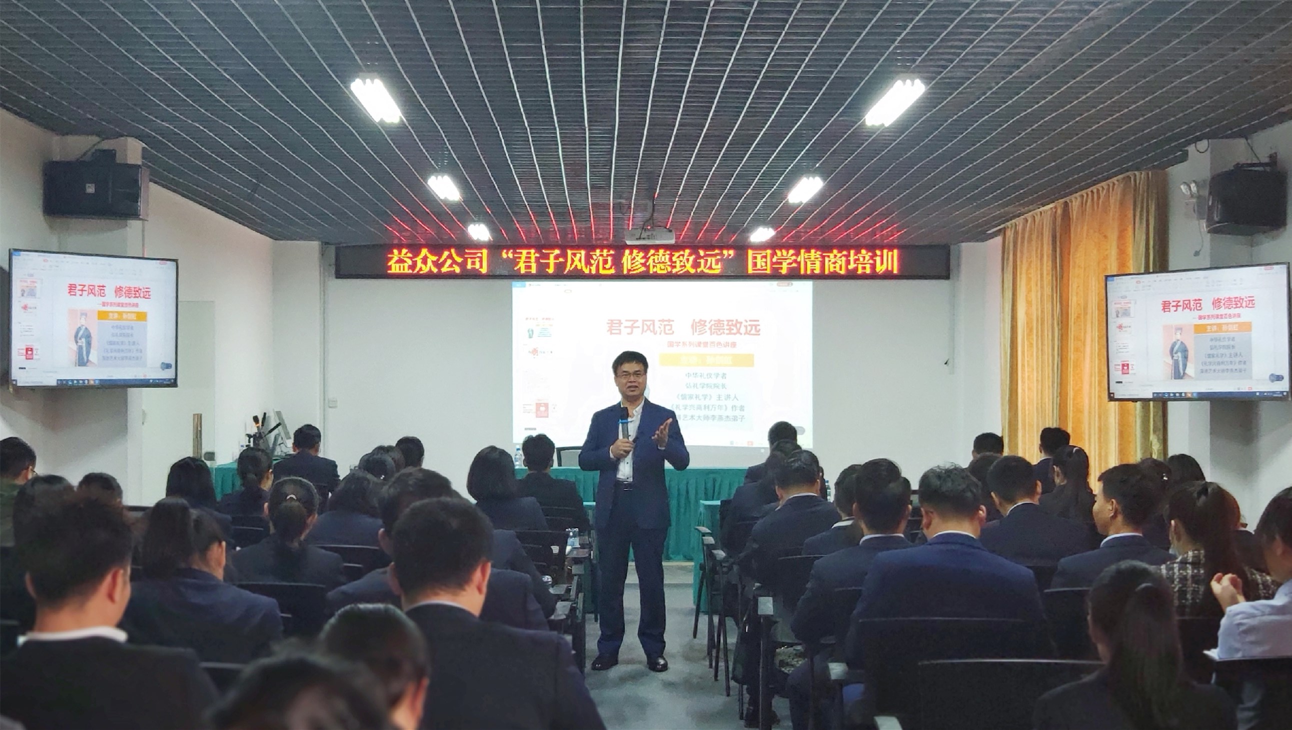 ????????為進(jìn)一步提升公司員工職業(yè)素養,加深對傳統文化的了解和學(xué)習,近日,益眾公司開(kāi)展“君子風(fēng)范 修德致遠”國學(xué)情商培訓,公司百余名員工在老鄉家園辦公區3樓會(huì )議室參加了培訓。
