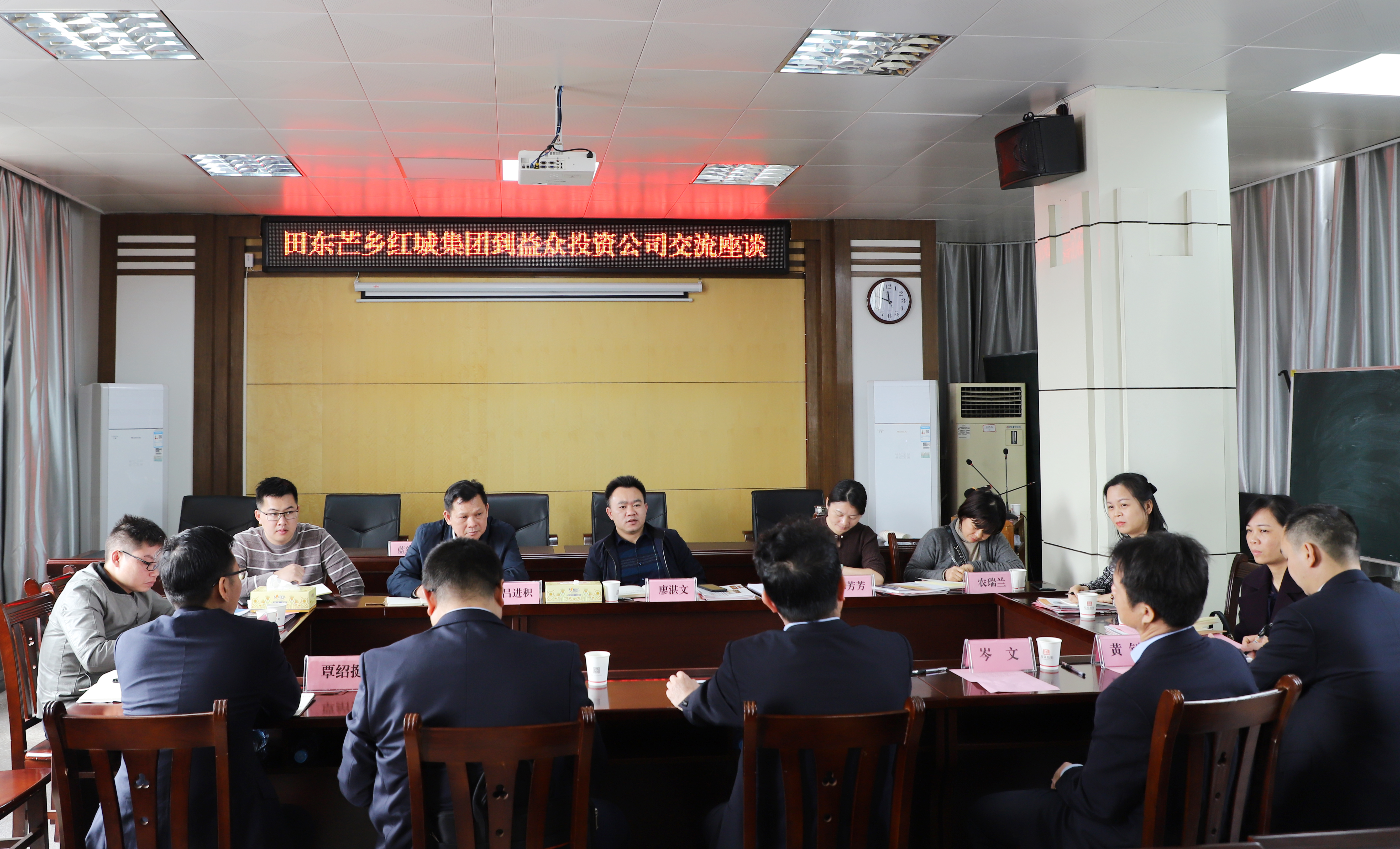 ????????2月20日,廣西田東芒鄉紅城投資集團有限公司黨委副書(shū)記、董事長(cháng)、總裁廖湛文一行8人到益眾公司考察交流,公司領(lǐng)導班子參加座談交流并介紹情況。公司有關(guān)部門(mén)負責人參加。