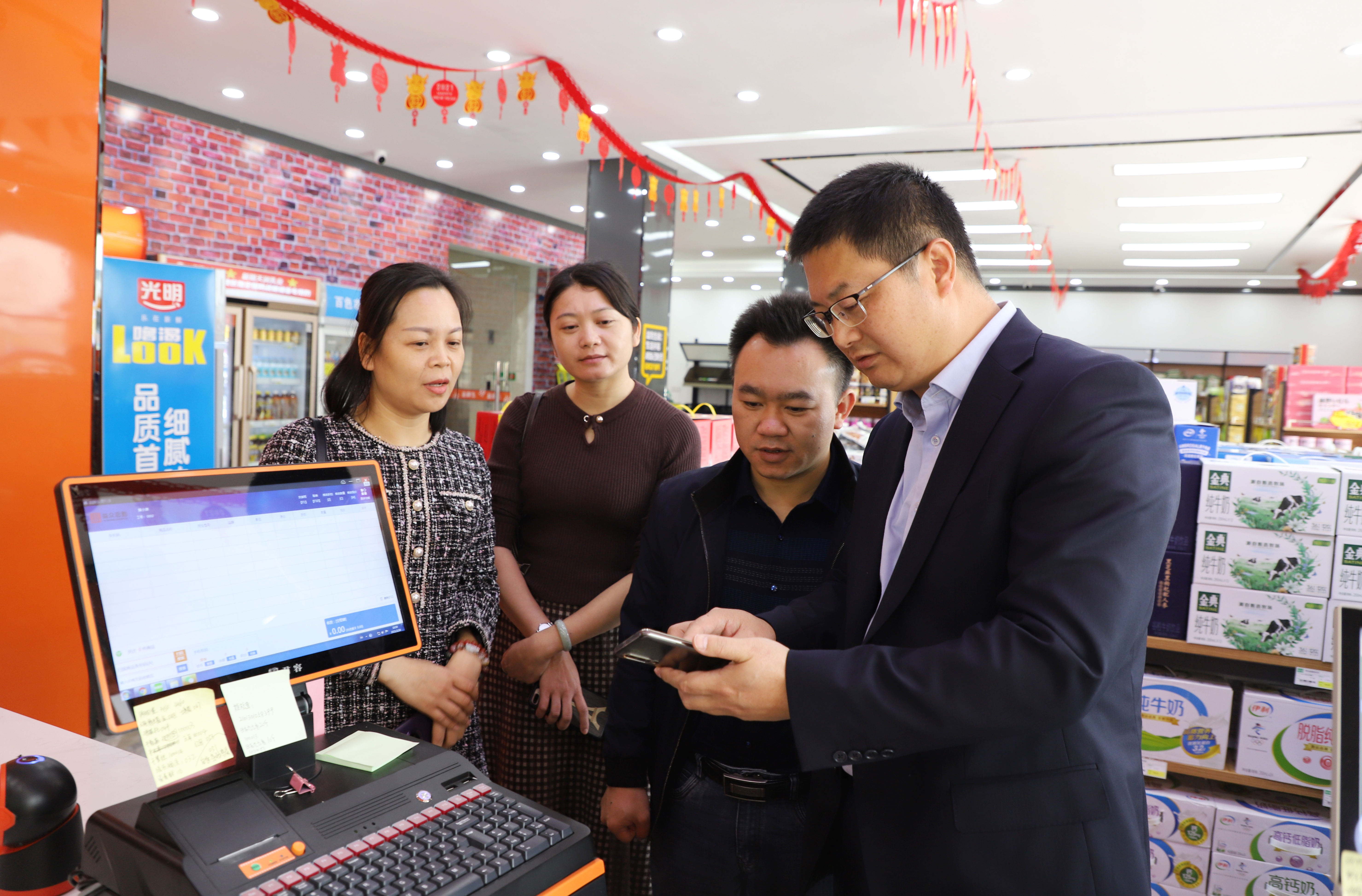 在益眾后勤公司“益鮮生”便利店,公司領(lǐng)導向考察組