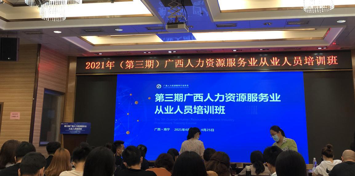 ????????2021年(第三期)廣西人力資源服務(wù)業(yè)從業(yè)人員培訓班近日在南寧舉辦,各市企事業(yè)單位從事人力資源工作人員,以及全區各類(lèi)人力資源服務(wù)機構從業(yè)人員參加培訓,益嘉人資公司派一人參加。