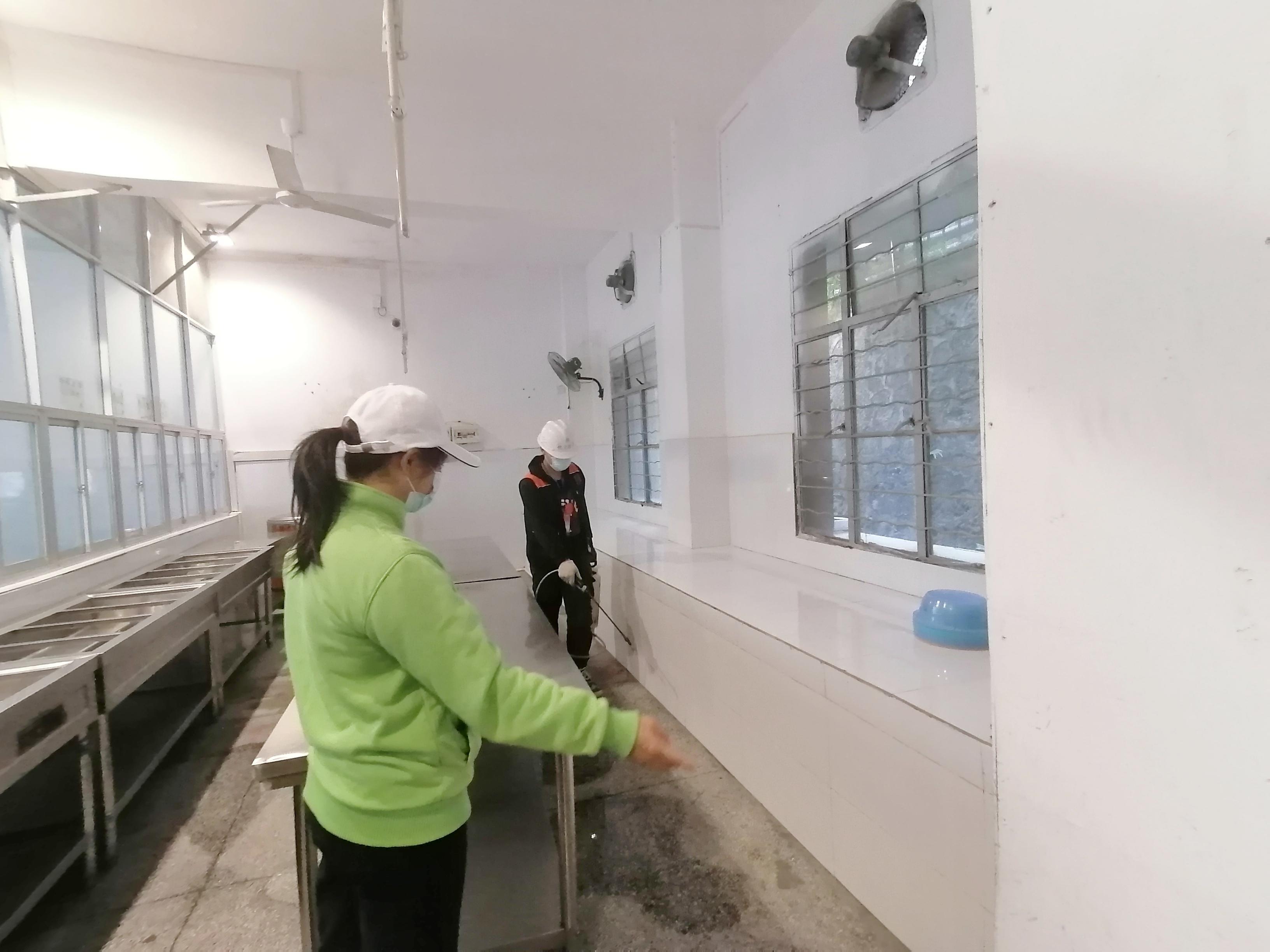 工作人員進(jìn)行每日的環(huán)境通風(fēng)消殺工作