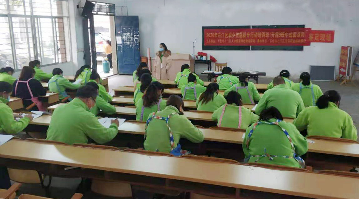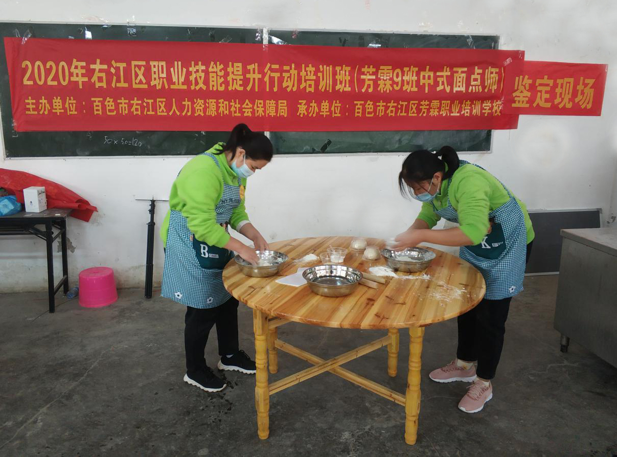 ????????近日,廣西百色益嘉職業(yè)技能培訓學(xué)校開(kāi)展了2020年右江區職業(yè)技能提升行動(dòng)培訓班(中式面點(diǎn)師)初級工鑒定考核,來(lái)自益眾托管校區共33名學(xué)員參加。