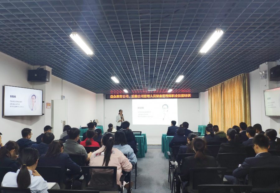 ????????為加強職工隊伍建設,提升專(zhuān)業(yè)技能,培養專(zhuān)業(yè)人才,11月5日,益眾教育公司、益眾后勤公司聯(lián)合開(kāi)展了健康管理師職業(yè)技能培訓,50余名管理人員參加。