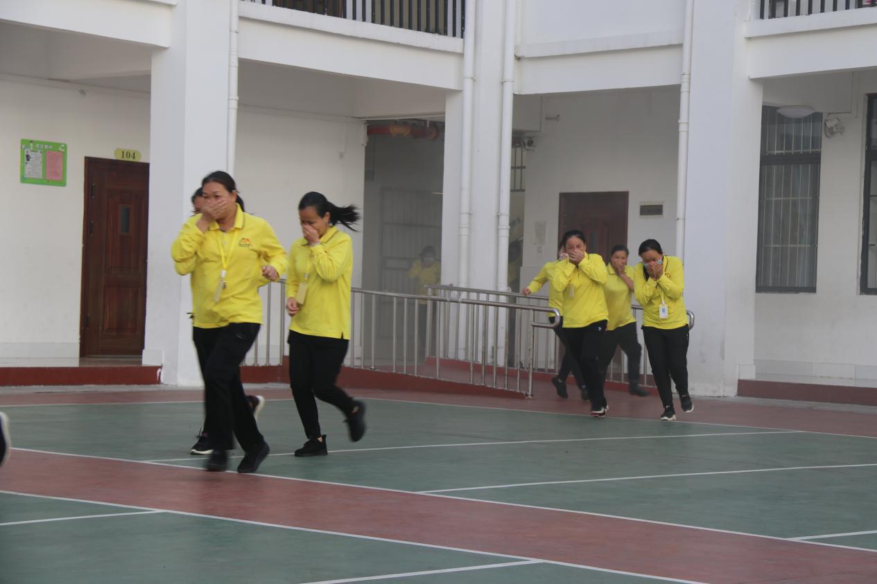 參訓人員在模擬火災演練中有序進(jìn)行逃生