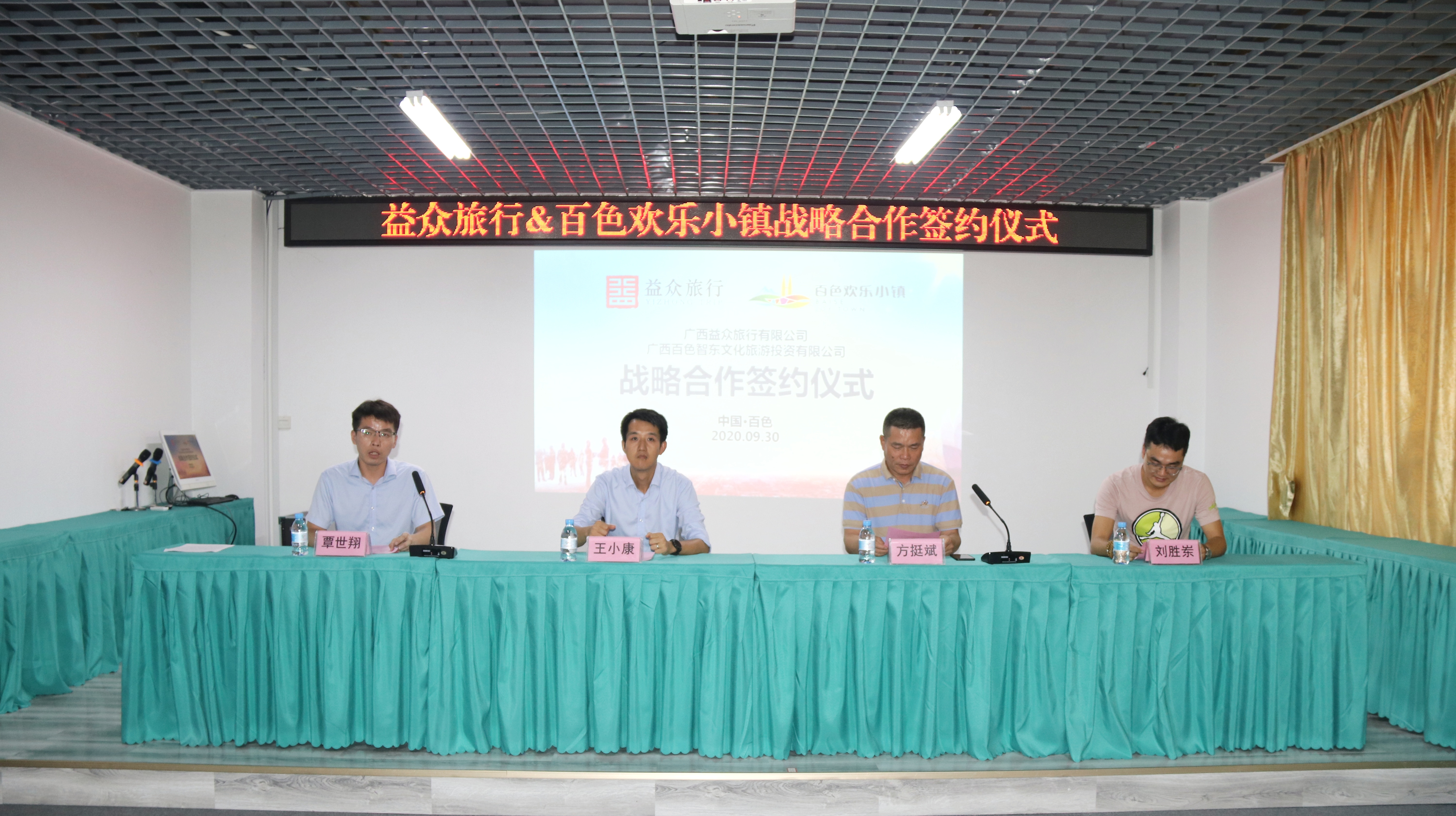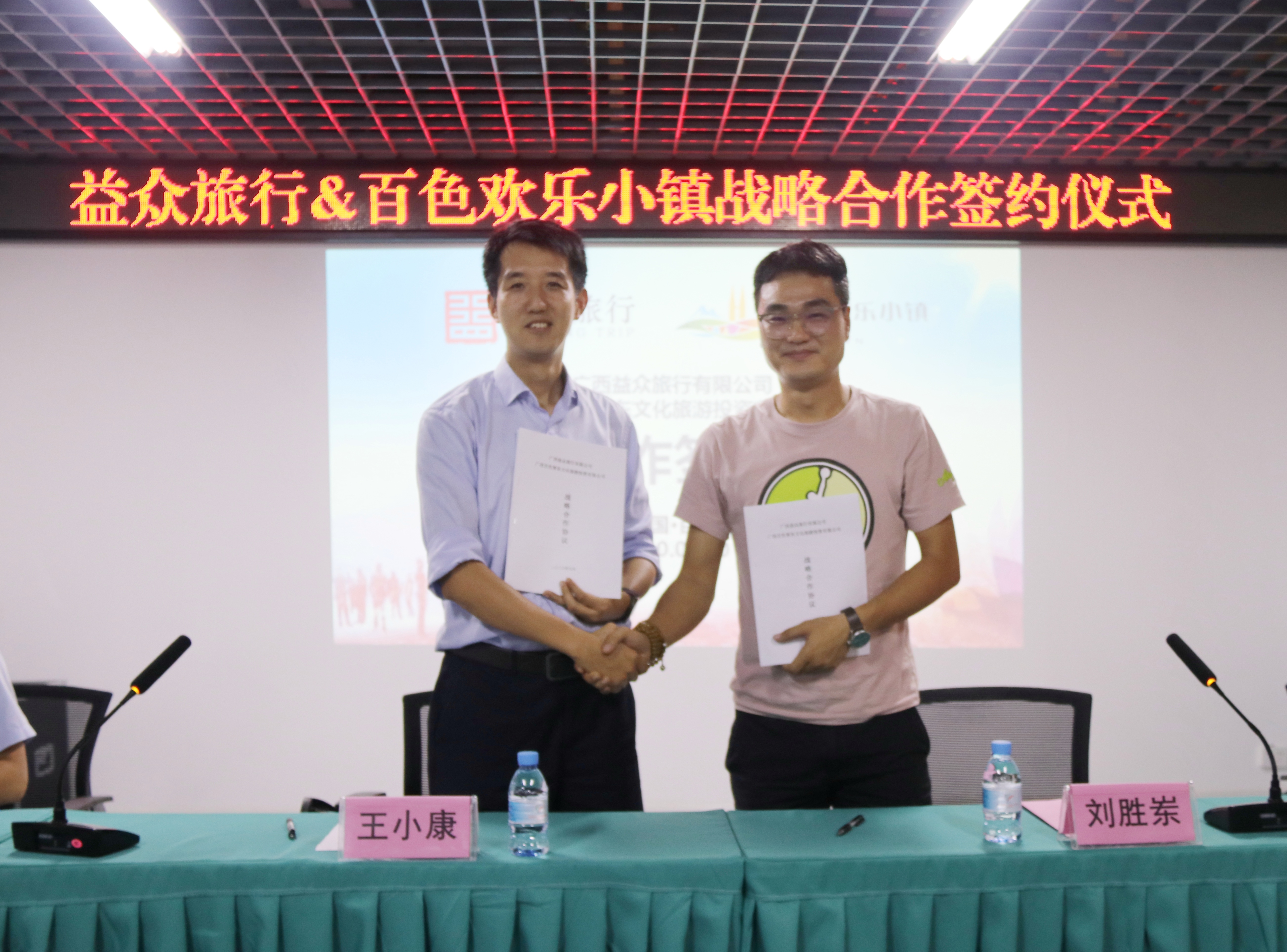 ????????9月30日,廣西益眾旅行有限公司與廣西百色智東文化旅游投資有限公司舉行戰略合作簽約儀式。廣西益眾旅行有限公司副總經(jīng)理王小康、百色歡樂(lè )小鎮總經(jīng)理方挺斌、廣西百色智東文化旅游投資有限公司副總經(jīng)理劉勝崠出席儀式。