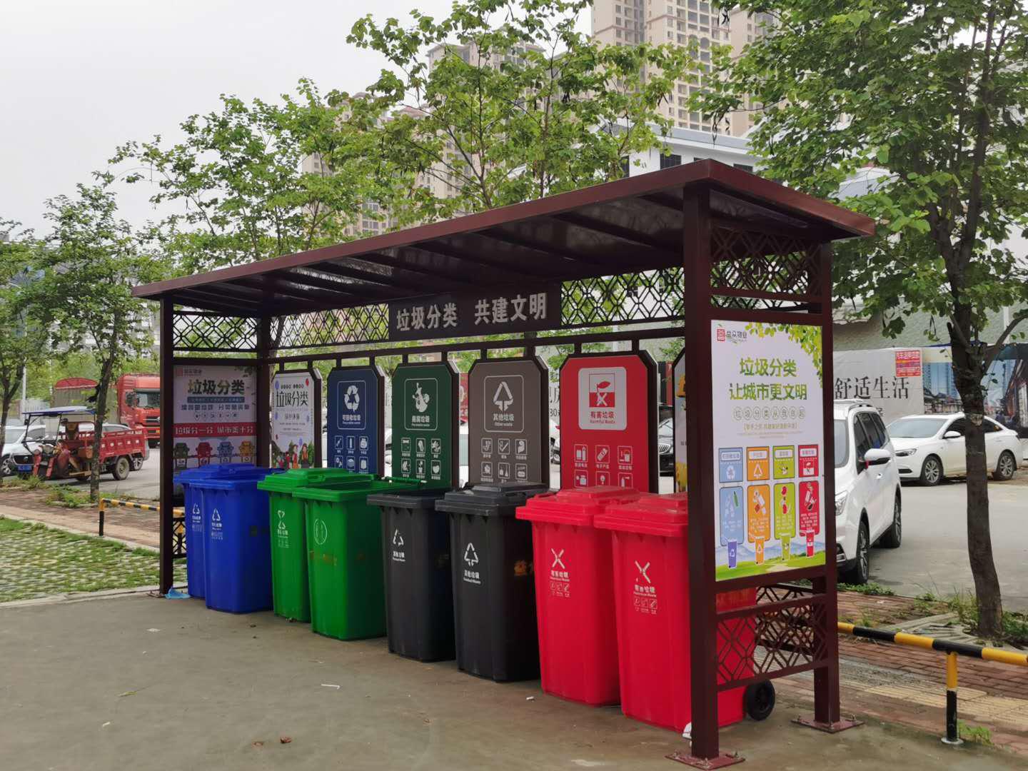 ???????益眾物業(yè)公司在小區外圍設置垃圾分類(lèi)試點(diǎn)2個(gè),投放分類(lèi)垃圾桶16個(gè)。垃圾回收站內設置了可回收垃圾收集箱、有害垃圾收集箱、廚余垃圾收集箱等,居民前來(lái)投放垃圾可按垃圾類(lèi)型進(jìn)行細分。