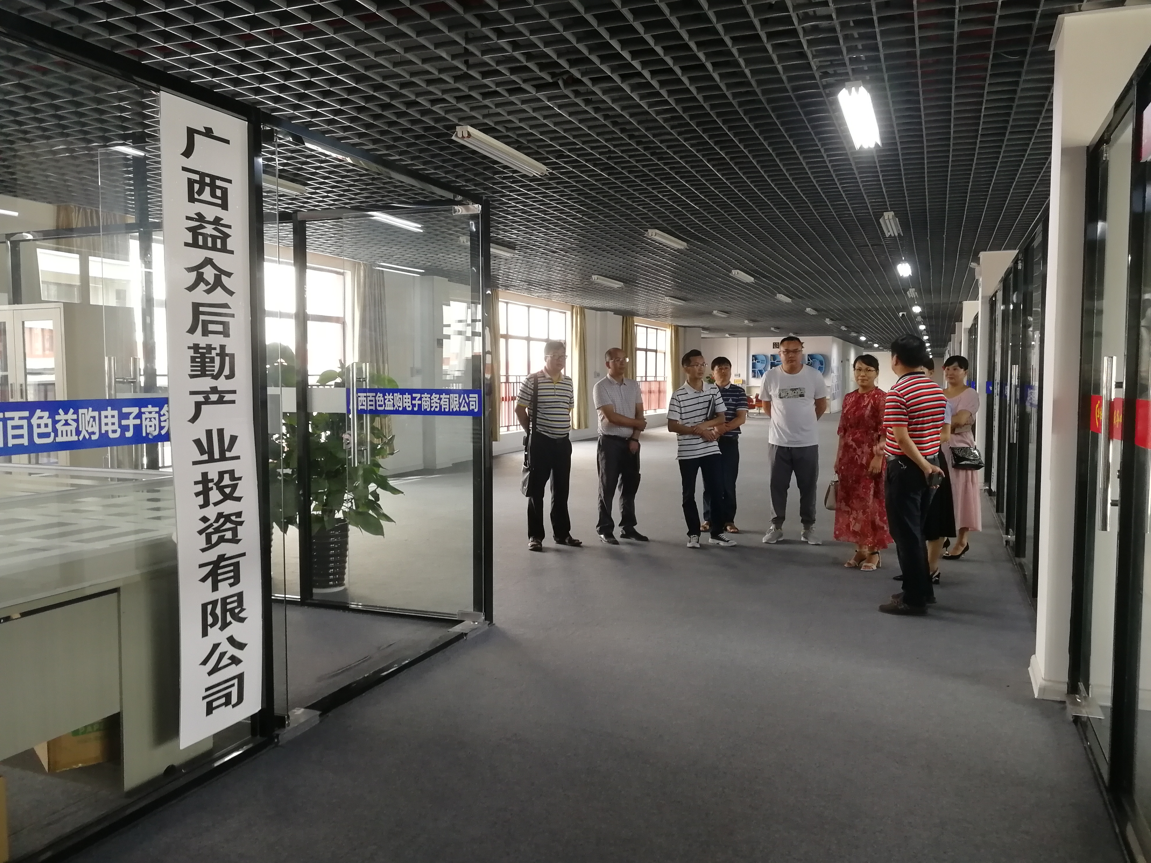 ????????近日,靖西市商務(wù)局局長(cháng)趙庭克帶領(lǐng)該局相關(guān)部門(mén)人員、靖西市有關(guān)企業(yè)負責人一行8人到廣西益眾后勤產(chǎn)業(yè)投資有限公司考察調研,右江區商務(wù)中心主任孫春春、益眾后勤公司相關(guān)負責人陪同考察調研。