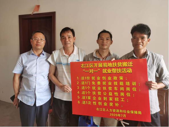 ????????近日,由右江區人力資源和社會(huì )保障局主辦,百色益嘉人力資源有限公司承辦的右江區易地扶貧搬遷“一對一”就業(yè)幫扶活動(dòng)在右江區老鄉家園-迎龍易地扶貧搬遷安置小鎮順利開(kāi)展。本次活動(dòng)主要援助對象為右江區老鄉家園-迎龍易地扶貧搬遷安置小鎮未實(shí)現轉移就業(yè)有就業(yè)意向人員,集中幫扶搬遷戶(hù)的就業(yè)創(chuàng )業(yè)。
