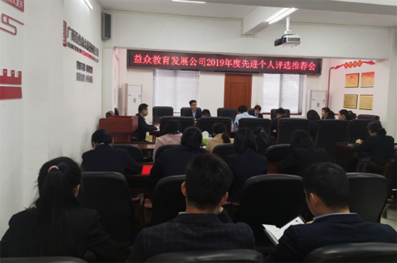 為進(jìn)一步提高干部職工的凝聚力和戰斗力,樹(shù)立典型,發(fā)揮先鋒模范作用,根據公司總部的《2019年度先進(jìn)集體、先進(jìn)個(gè)人評選表彰工作方案》文件要求,益眾教育公司組織開(kāi)展2019年度評先評優(yōu)工作,公司本部、下屬公司全體管理人員參會(huì )。評先評優(yōu)工作本著(zhù)公開(kāi)、公平、公正的原則,以實(shí)事求是的態(tài)度,通過(guò)不記名投票方式進(jìn)行評選,選拔出一批政治素質(zhì)高、崗位技能強、工作完成滿(mǎn)意度佳、群眾評價(jià)好的先進(jìn)員工。