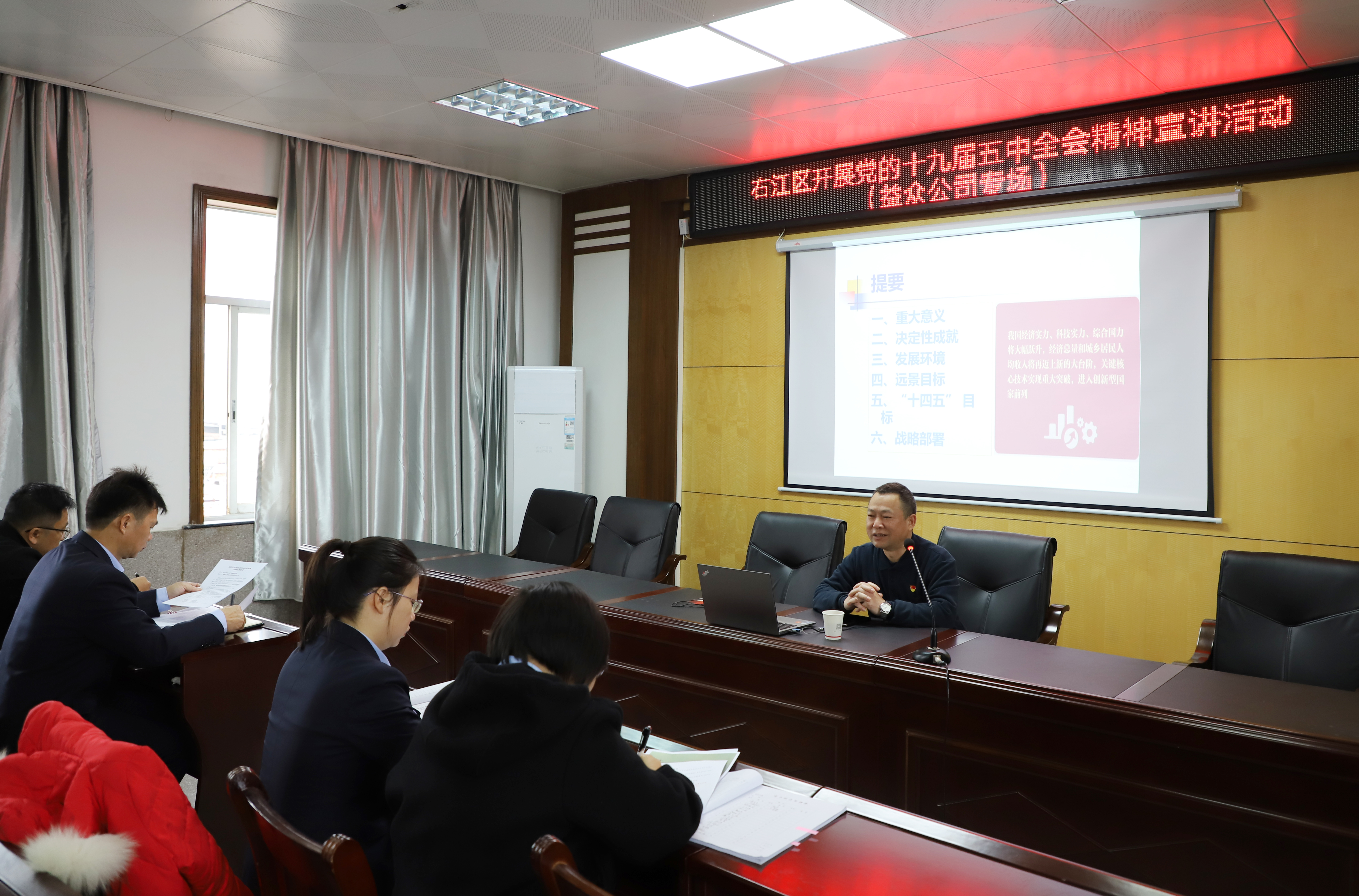 ????????右江區宣講團黨的十九屆五中全會(huì )精神宣講報告會(huì )益眾公司專(zhuān)場(chǎng)近日舉行,宣講團成員、區委黨校講師易祖文作宣講報告。公司領(lǐng)導干部、黨員、入黨積極分子約30人聆聽(tīng)報告。