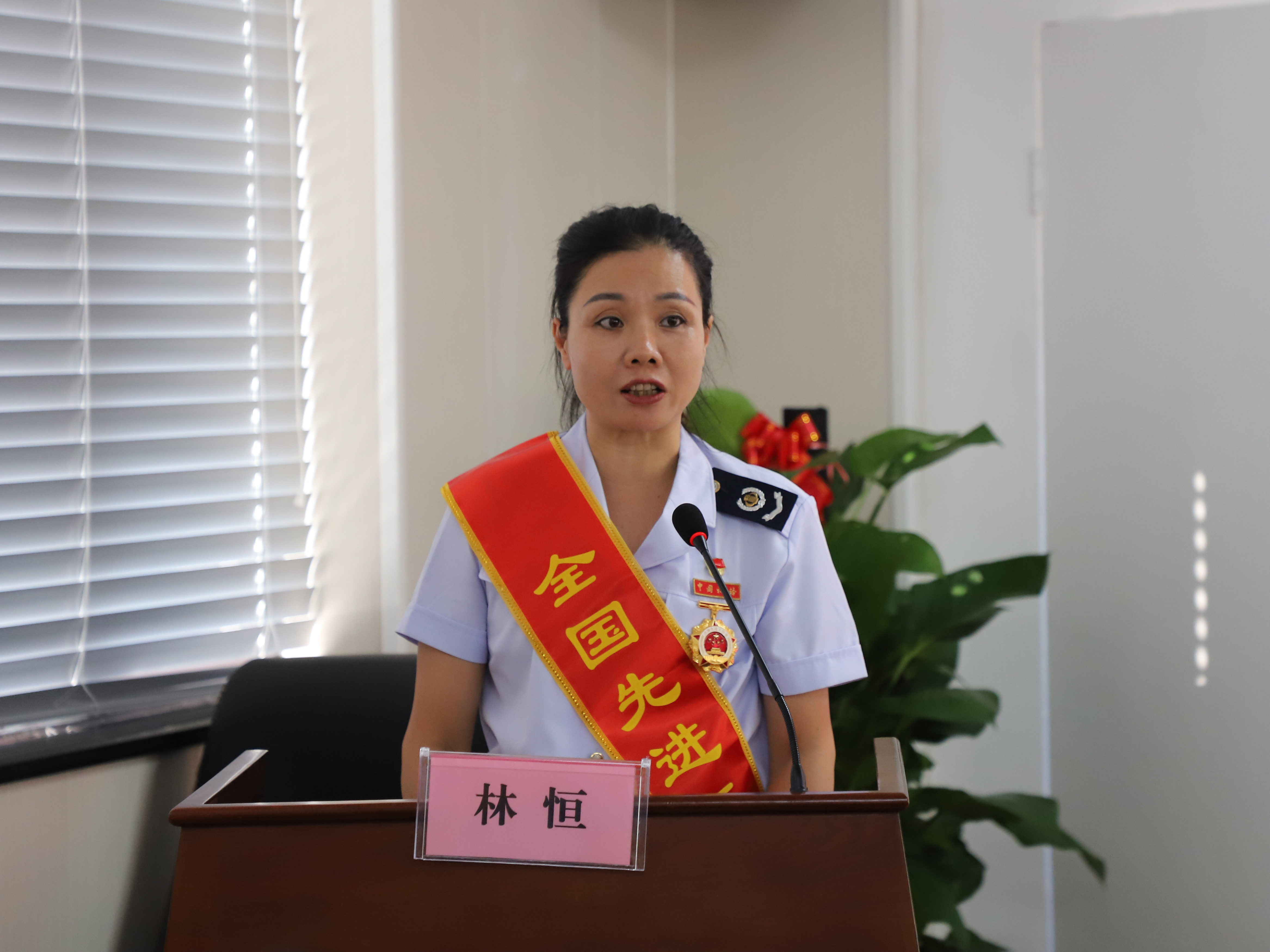 林恒同志以《三十七載從稅路,無(wú)悔奉獻守初心》為題作宣講報告