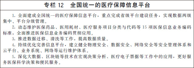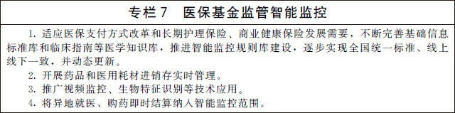 ——建設智慧醫保。醫療保障信息化水平顯著(zhù)提升,全國統一的醫療保障信息平臺全面建成,“互聯(lián)網(wǎng)+醫療健康”醫保服務(wù)不斷完善,醫保大數據和智能監控全面應用,醫保電子憑證普遍推廣,就醫結算更加便捷。