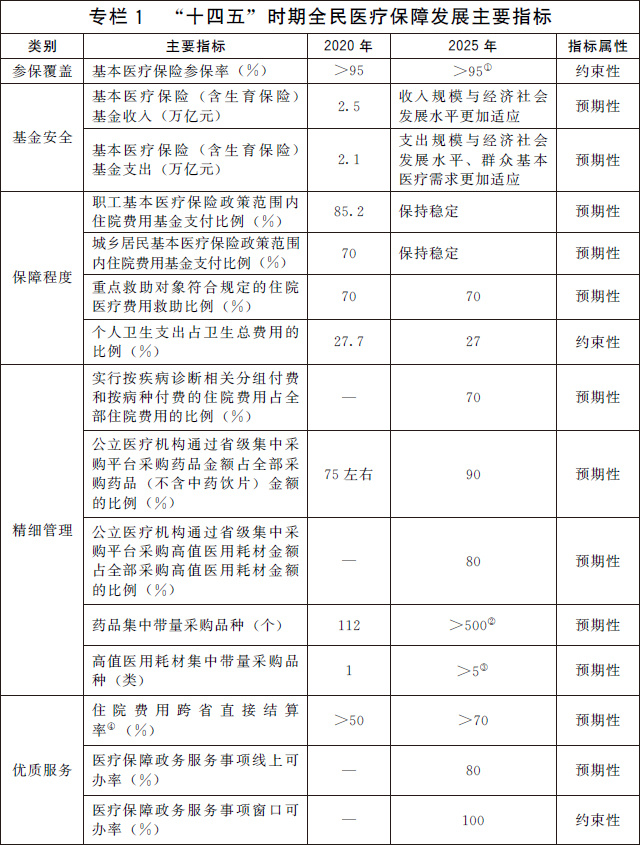 注:①指“十四五”期間基本醫療保險參保率每年保持在95%以上。