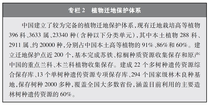 逐步完善遷地保護體系。建立了植物園、野生動(dòng)物救護繁育基地以及種質(zhì)資源庫、基因庫等較為完備的遷地保護體系。截至目前,建立植物園(樹(shù)木園)近200個(gè),保存植物2.3萬(wàn)余種;建立250處野生動(dòng)物救護繁育基地,60多種珍稀瀕危野生動(dòng)物人工繁殖成功。