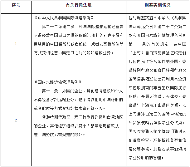 一、按照《中國(上海)自由貿易試驗區臨港新片區總體方案》,同意自即日起至2024年12月31日,在中國(上海)自由貿易試驗區臨港新片區暫時(shí)調整實(shí)施《中華人民共和國國際海運條例》《國內水路運輸管理條例》的有關(guān)規定(目錄附后)。