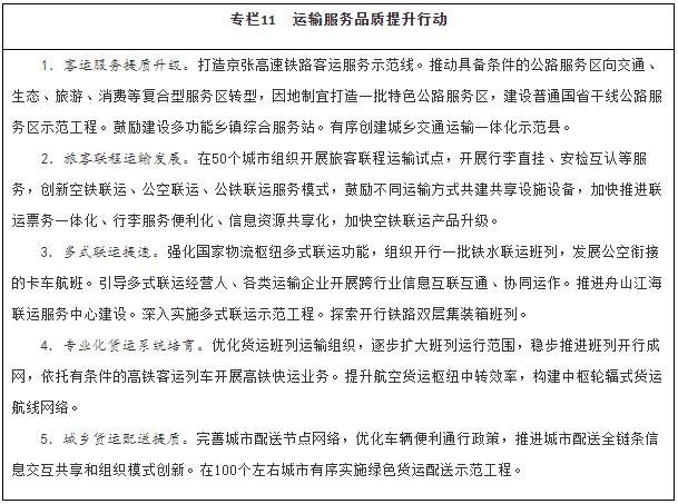發(fā)展高品質(zhì)客運服務(wù)。優(yōu)化高速鐵路運輸組織,擴大復興號動(dòng)車(chē)組上線(xiàn)運行范圍,逐步實(shí)現高速鐵路達速運行,提高普速鐵路服務(wù)質(zhì)量,鼓勵開(kāi)行夕發(fā)朝至列車(chē)。加強監管,鼓勵和規范發(fā)展道路客運定制服務(wù)。促進(jìn)航空服務(wù)網(wǎng)絡(luò )干支有效銜接,優(yōu)化航班時(shí)刻資源配置,持續提高航班正常率,增加航空運輸服務(wù)品類(lèi)。積極培育郵輪市場(chǎng),拓展旅游產(chǎn)品,促進(jìn)郵輪服務(wù)升級,推動(dòng)游艇、游船、房車(chē)旅游發(fā)展,優(yōu)化完善自駕車(chē)旅行服務(wù)設施,依托汽車(chē)客運站發(fā)展旅游集散業(yè)務(wù),培育交通消費新模式。