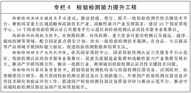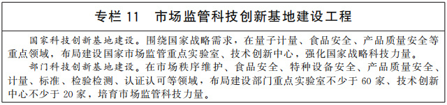 加強科技支撐體系建設。鼓勵市場(chǎng)監管領(lǐng)域科研創(chuàng )新,加強市場(chǎng)監管重點(diǎn)領(lǐng)域關(guān)鍵技術(shù)攻關(guān)和先進(jìn)裝備研制,布局一批國家和部門(mén)科技創(chuàng )新基地。重點(diǎn)推進(jìn)中國標準化研究院國家標準館建設工程和昌平實(shí)驗基地二期建設工程、中國計量科學(xué)研究院實(shí)驗基地二期建設工程、國家食品質(zhì)量安全檢(監)測能力建設工程、國家消費品質(zhì)量安全風(fēng)險監測預警能力建設工程等建設,全面提升市場(chǎng)監管科技支撐能力。