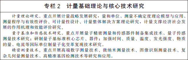 (十)服務(wù)高端儀器發(fā)展和精密制造。加強高端儀器設備核心器件、核心算法和核心溯源技術(shù)研究,推動(dòng)關(guān)鍵計量測試設備國產(chǎn)化。推動(dòng)量子芯片、物聯(lián)網(wǎng)、區塊鏈、人工智能等新技術(shù)在計量?jì)x器設備中的應用。加強高精度計量基準、標準器具的研制和應用,提升計量基準、標準關(guān)鍵核心設備自主可控率。加強色譜儀、質(zhì)譜儀、掃描電子顯微鏡、高精度原子重力儀等高端通用儀器設備研制,加快面向智能制造、環(huán)境監測、國防等領(lǐng)域專(zhuān)用計量?jì)x器儀表的研制和推廣使用。加快量子傳感器、太赫茲傳感器、高端圖像傳感器、高速光電傳感器等傳感器的研制和應用。實(shí)施儀器設備質(zhì)量提升工程,強化計量在儀器設備研發(fā)、設計、試驗、生產(chǎn)和使用中的基礎保障作用。建立儀器儀表計量測試評價(jià)制度。建立儀器儀表產(chǎn)業(yè)發(fā)展集聚區,培育具有核心技術(shù)和核心競爭力的國產(chǎn)儀器儀表品牌。