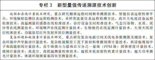 (七)加強關(guān)鍵共性計量技術(shù)研究。加快開(kāi)展量熱技術(shù)、數字化模擬測量技術(shù)、工況環(huán)境監測技術(shù)等基礎共性計量技術(shù)研究。加強智能化計量校準技術(shù)研究,開(kāi)展計量軟件功能安全測評等關(guān)鍵技術(shù)研究和應用。加強高精度、集成化、微型化、智能化的新型傳感技術(shù)研究,攻克高端計量測試儀器設備核心關(guān)鍵部件和技術(shù)。建立有利于計量新技術(shù)、新方法向產(chǎn)業(yè)轉移的服務(wù)平臺。