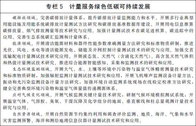 (十四)支撐碳達峰碳中和目標實(shí)現。完善溫室氣體排放計量監測體系,加強碳排放關(guān)鍵計量測試技術(shù)研究和應用,健全碳計量標準裝置,為溫室氣體排放可測量、可報告、可核查提供計量支撐。建立碳排放計量審查制度,強化重點(diǎn)排放單位的碳計量要求。在城市和園區開(kāi)展低碳計量試點(diǎn)。建立完善資源環(huán)境計量體系,建設一批國家能源、水文水資源和環(huán)境計量中心,推進(jìn)能耗、水資源、環(huán)境監測系統建設,加強能源資源和環(huán)境計量數據分析挖掘和利用。加快推進(jìn)能源資源計量服務(wù)示范工程建設,引導和培育能源資源和環(huán)境計量服務(wù)市場(chǎng)。