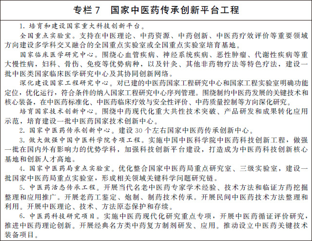 3.建設高層次科技平臺。依托現有資源,建設一批國家級中醫藥研究平臺,研究布局全國重點(diǎn)實(shí)驗室、國家臨床醫學(xué)研究中心、國家工程研究中心和國家技術(shù)創(chuàng )新中心;推進(jìn)國家中醫藥傳承創(chuàng )新中心、國家中醫臨床研究基地和中國中醫藥循證醫學(xué)中心建設。發(fā)揮中國中醫科學(xué)院“國家隊”作用,實(shí)施中醫藥科技創(chuàng )新工程。