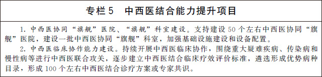 加強中西醫結合醫院服務(wù)能力建設。建立符合中西醫結合醫院特點(diǎn)和規律的績(jì)效評價(jià)指標體系,修訂中西醫結合醫院工作指南。加強中西醫結合醫院業(yè)務(wù)用房等基礎設施建設,強化設備配置。開(kāi)展中西醫結合學(xué)科和專(zhuān)科建設,促進(jìn)中西醫聯(lián)合診療模式改革創(chuàng )新。