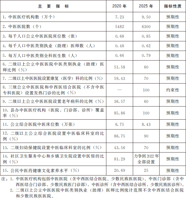 (三)發(fā)展目標。到2025年,中醫藥健康服務(wù)能力明顯增強,中醫藥高質(zhì)量發(fā)展政策和體系進(jìn)一步完善,中醫藥振興發(fā)展取得積極成效,在健康中國建設中的獨特優(yōu)勢得到充分發(fā)揮。